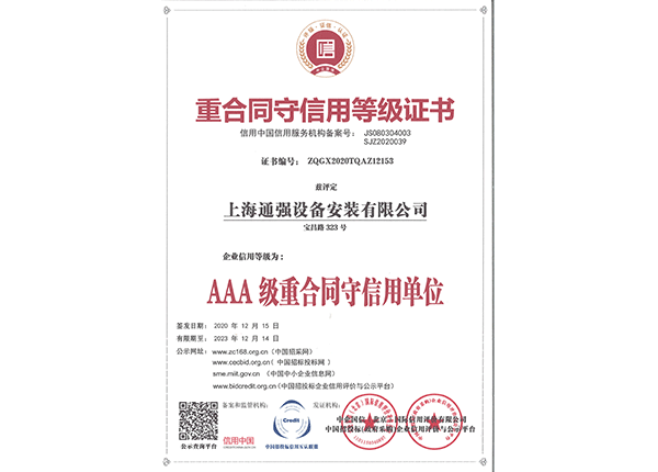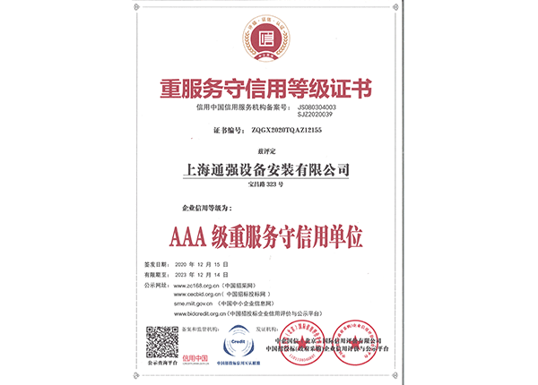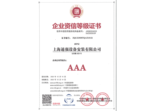 上海通強設備安裝有限公司注冊資金2000萬元,資產(chǎn)總量為100000萬元的專業(yè)設備安裝公司,公司專業(yè)從事工業(yè)與民用建筑的設備安裝、非標設備的制作、鋼結構制作安裝、中央空調(diào)系統(tǒng)的安裝,水電及管道的安裝。經(jīng)過20多年艱苦創(chuàng)業(yè)現(xiàn)已成為一個具有國家二級安裝資質,獲得上海市“重合同,守信用”的施工單位。